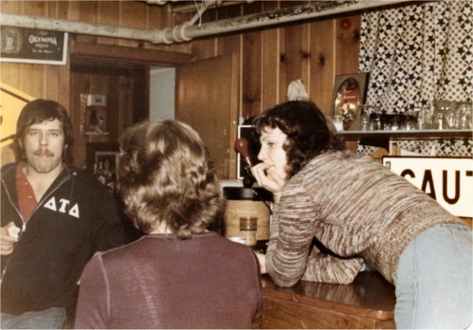Lynn Heimbigner (' 78) entertains in the "Corner Club."