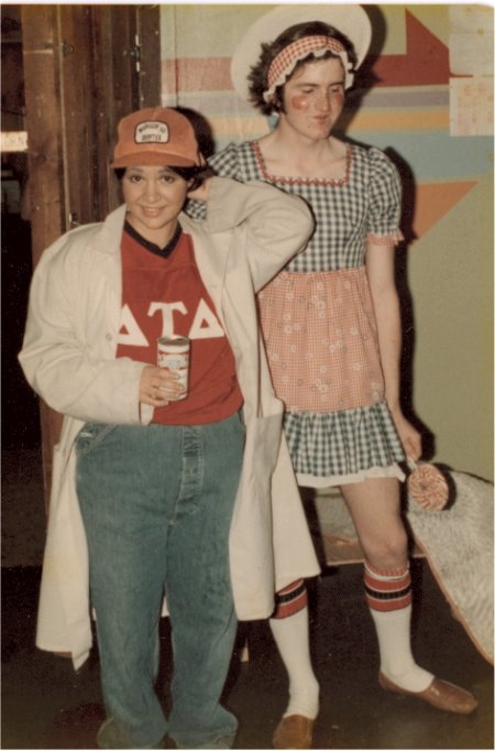 Jim Cornwall dressed as a girl as part of a "Sally Sunshine" contest where the girls dress the guys as girls and vice versa.